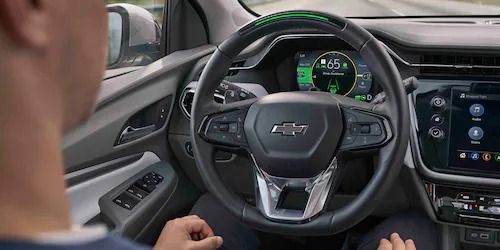 Connected Vehicle Services: Connected vehicle services vary by vehicle model and require active service plan, working electrical system, cell reception and GPS signal. OnStar links to emergency services. See onstar.com for details and limitations. Automatic Crash Response: OnStar plan, working electrical system, cell reception and GPS signal required. OnStar links to emergency services. Not all vehicles may transmit all crash data. See onstar.com for details and limitations. OnStar Emergency-Certified Advisor: Certified by the International Academies of Emergency Dispatch®. Emergency Services, Crisis Assist: OnStar plan, working electrical system, cell reception and GPS signal required. OnStar links to emergency services. See onstar.com for details and limitations. Stolen Vehicle Assistance: Requires paid plan, working electrical system, cell reception, GPS signal, armed GM factory-installed theft-deterrent system, contact method on file and enrollment to receive alerts. Additional messaging and data rates may apply. Services are intended to assist with vehicle recovery and do not prevent theft or protect against damage or loss. See onstar.com for details and limitations. Roadside Assistance: Roadside service provided by Allstate Roadside Services for vehicles only. Limitations and restrictions apply. Turn-by-Turn Navigation: Requires paid plan and properly equipped vehicle. Mobile app functionality is available on select devices and requires data connection. Map coverage available in the U.S., Puerto Rico and Canada. See onstar.com for details and limitations. OnStar Guardian App: U.S. and Canada only. Available on select Apple and Android devices. Mobile Crash Response services are intended for use in select vehicles only and can connect automatically on Android devices only. Service coverage varies with conditions and location. Service availability, features and functionality vary by device and software version. OnStar Guardian service plan (stand-alone plan, add-on plan or plan that includes the service), cell reception, GPS signal and device data connection required. Terms apply. Device permissions are required for app to operate properly. OnStar links to emergency services. Device and app may not transmit all crash data. See onstar.com for details and limitations. Pricing and availability subject to change. You may cancel at any time by calling 1.888.4ONSTAR (1.888.466.7827). Maps+: U.S. only. Available on properly equipped 2018 model year and newer GM vehicles. Requires select service plan. Functionality is subject to user terms and limitations and varies by vehicle model. See onstar.com for details and limitations. Connected Navigation: Connected Navigation and Real-time Points of Interest (POI) only available on properly equipped vehicles. Requires paid plan or trial. Map coverage available in the U.S., Puerto Rico and Canada. See onstar.com for details and limitations. myChevrolet Action for Google Assistant: Google Assistant is not available in certain languages and countries. Requires Internet connection. Service availability, features and functionality are subject to limitations and vary by vehicle, device, location and active service plan. Device data connection is required. Google Actions require account linking to use. Lock/unlock feature requires automatic locks. Remote start/stop requires GM factory-installed and enabled remote start system. ©2021 Google LLC. All rights reserved. Google, Android, Google Assistant and other related marks and logos are trademarks of Google LLC. Super Cruise: Always pay attention while driving and when using Super Cruise for compatible roads. Do not use a hand-held device. View chevrolet.com/electric/super-cruise for compatible roads. General Safety Notice: Safety or driver assistance features are no substitute for a driver's responsibility to operate a vehicle in a safe manner. A driver should remain attentive to traffic, surroundings and road conditions at all times. Visibility, weather and road conditions may affect feature performance. Read your vehicle's Owner's Manual for important feature limitations and information. myChevrolet Mobile App: Available on select Apple and Android devices. Service availability, features and functionality vary by vehicle, device and the plan you are enrolled in. Terms apply. Device data connection required. See onstar.com for details and limitations. Remote Key Fob: Requires paid plan. Lock/unlock feature requires automatic locks. Remote start requires GM factory-installed and enabled remote start system. See onstar.com for details and limitations. Apple: Apple®, the Apple logo®, and App Store® are trademarks of Apple Inc., registered in the U.S. and other countries. Google: Google Play and the Google Play logo are trademarks of Google LLC. Wi-Fi Hotspot: Service varies with conditions and location. Requires active service plan and paid AT&T data plan. See onstar.com for details and limitations. In-Vehicle Apps: Available on select 2017 model year and newer GM vehicles with compatible hardware. Third-party trademarks are the property of their respective third-party owners and used under agreement. Requires active service plan and paid AT&T vehicle data plan. See onstar.com for details and limitations. myChevrolet Action for Google Assistant: Google Assistant is not available in certain languages and countries. Requires Internet connection. Service availability, features and functionality are subject to limitations and vary by vehicle, device, location and active service plan. Device data connection is required. Google Actions require account linking to use. Lock/unlock feature requires automatic locks. Remote start/stop requires GM factory-installed and enabled remote start system. ©2021 Google LLC. All rights reserved. Google, Android, Google Assistant and other related marks and logos are trademarks of Google LLC. Infotainment System: Functionality varies by model. Full functionality requires co